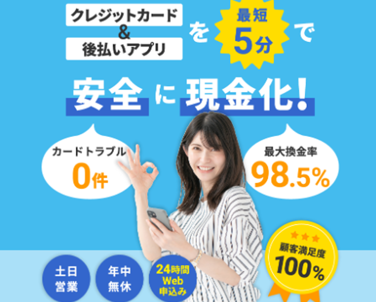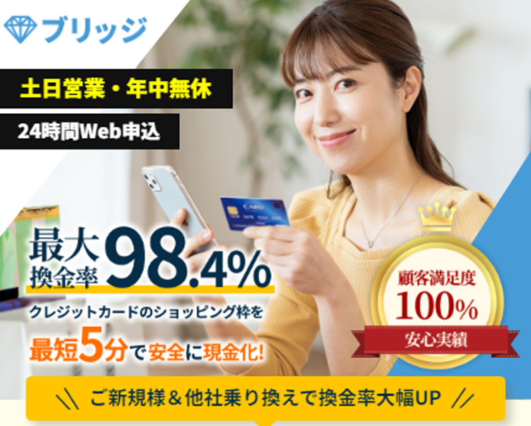 クレジットカードのショッピング枠(お買い物枠)を活用し、現金に換金するサービスです。